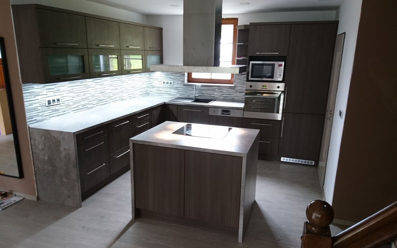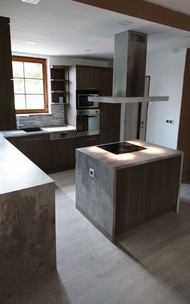 Kuch. linka v kombinaci betonu a tmavého dřeva