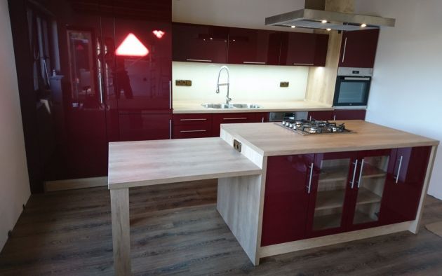 Kuch. linka v kombinaci červeného lesku a sv. dřeva