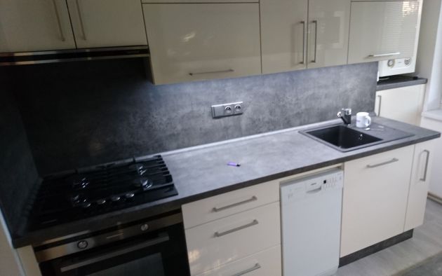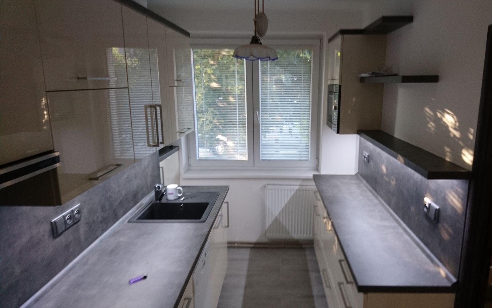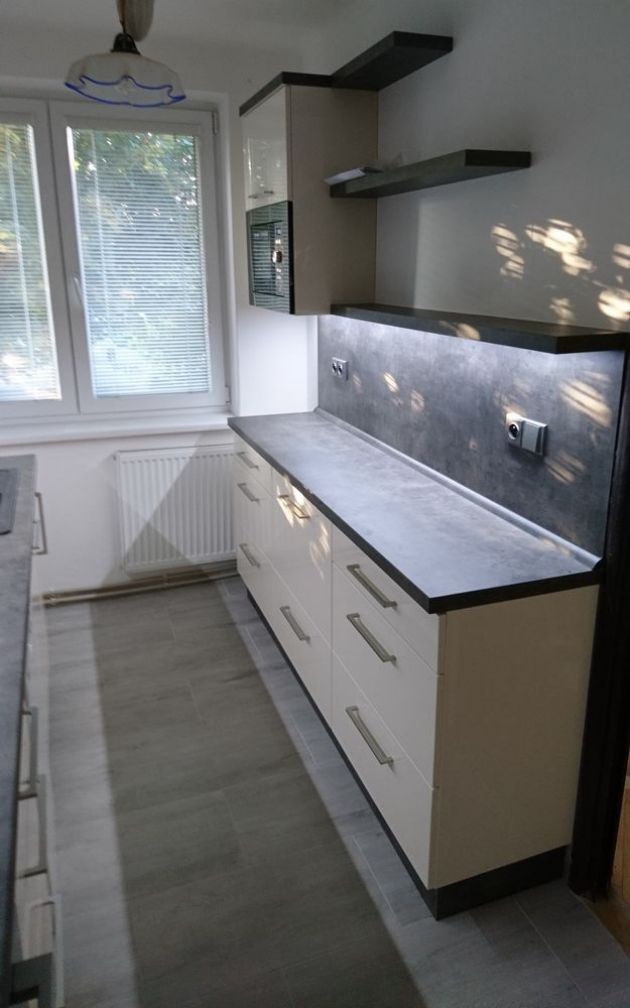 Kuch. linka v kombinaci lesklé vanilky a tmavého betonu