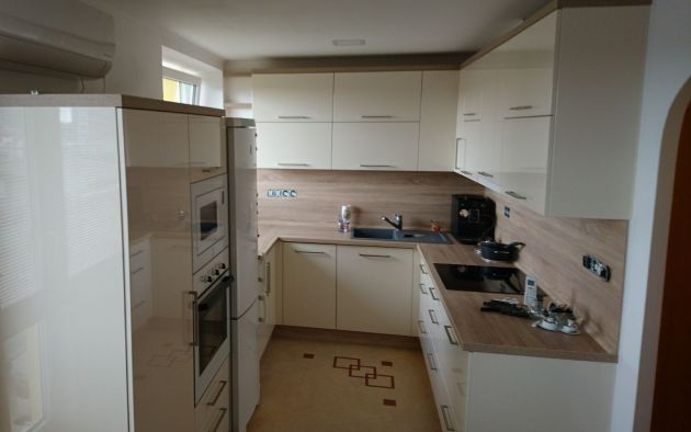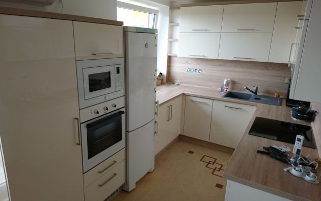 Bílá lesklá kuchyňská linka