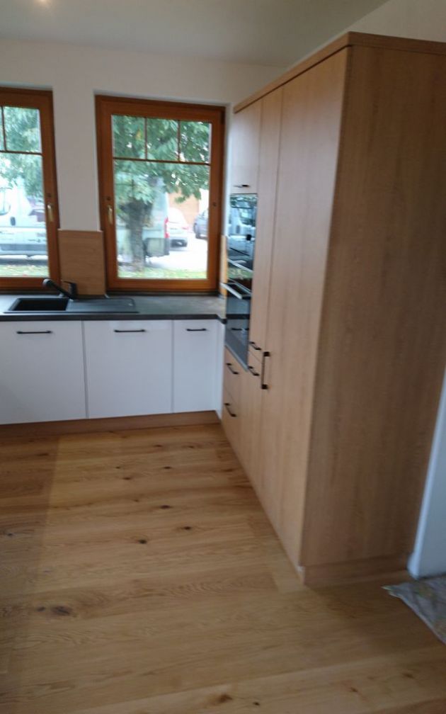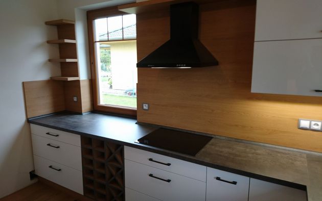 Bílá lesklá kuch. linka v kombinaci s přírodním dubem