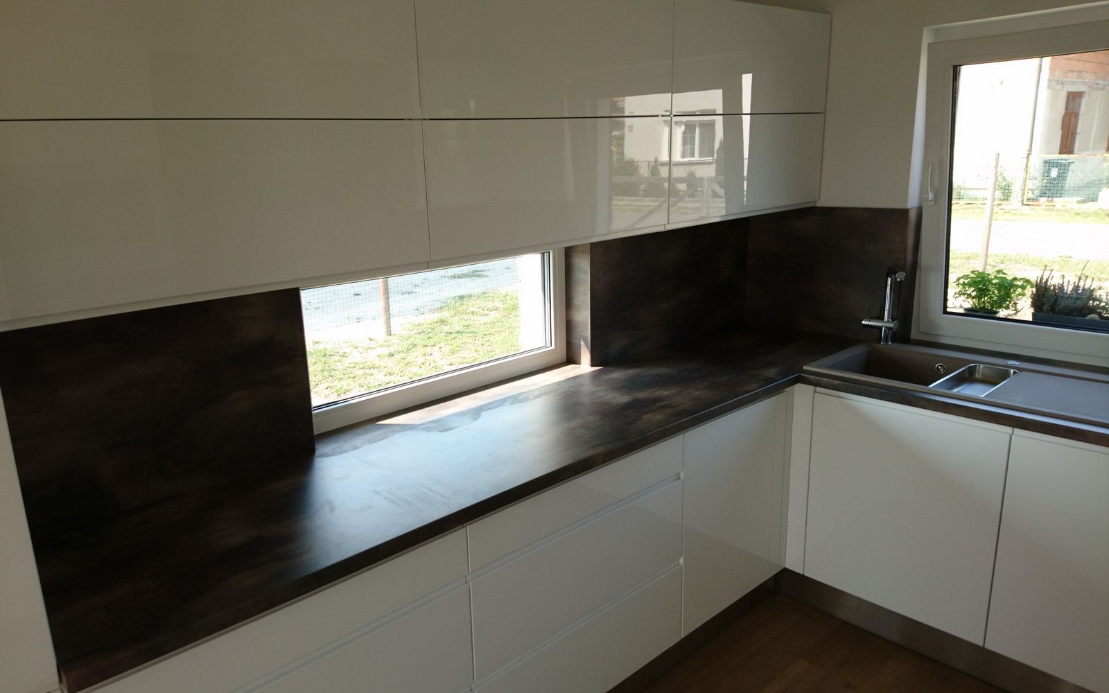 Bílá lesklá kuch. linka v bezúchytkovém provedeí
