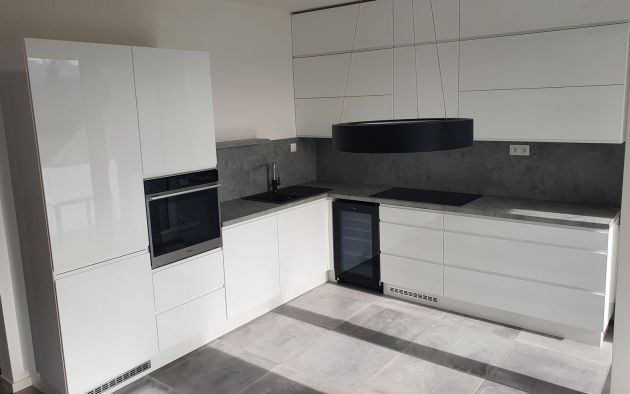 Bílá lesklá kuchyňská linka