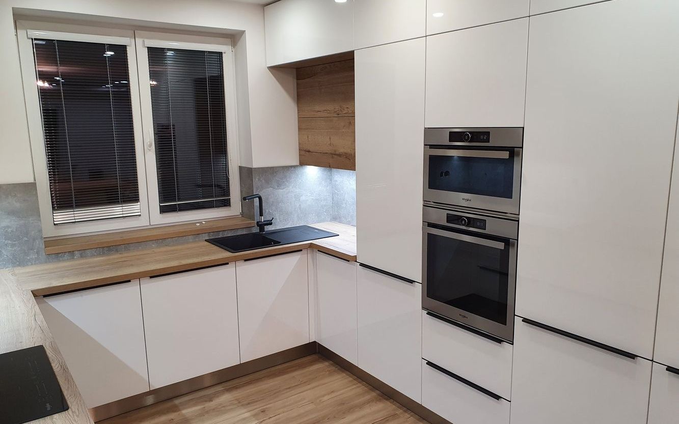 Bílá lesklá kuchyňská linka