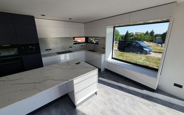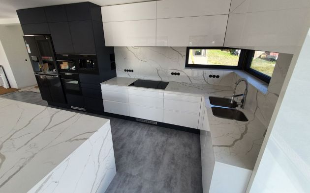 Bílá lesklá kuchyňská linka