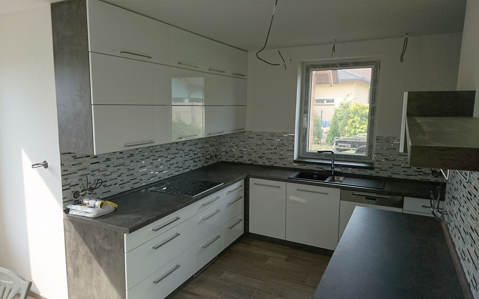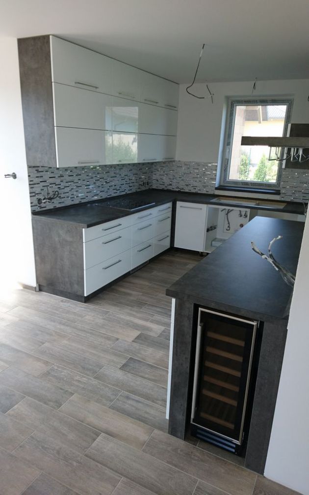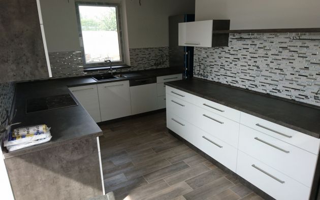 Oblíbená kombinace bílého lesku a tmavého betonu