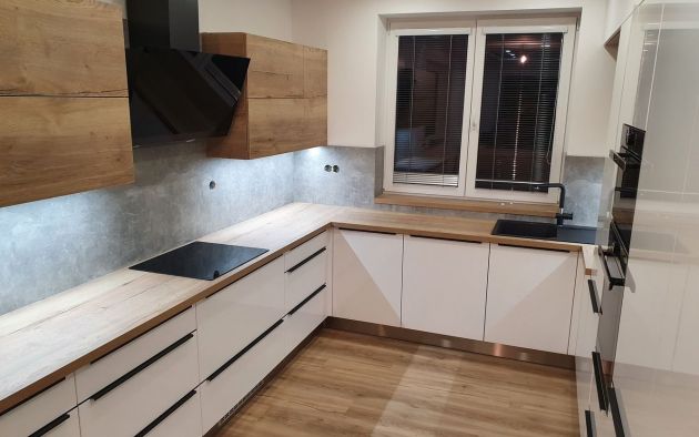 Bílá lesklá kuchyňská linka