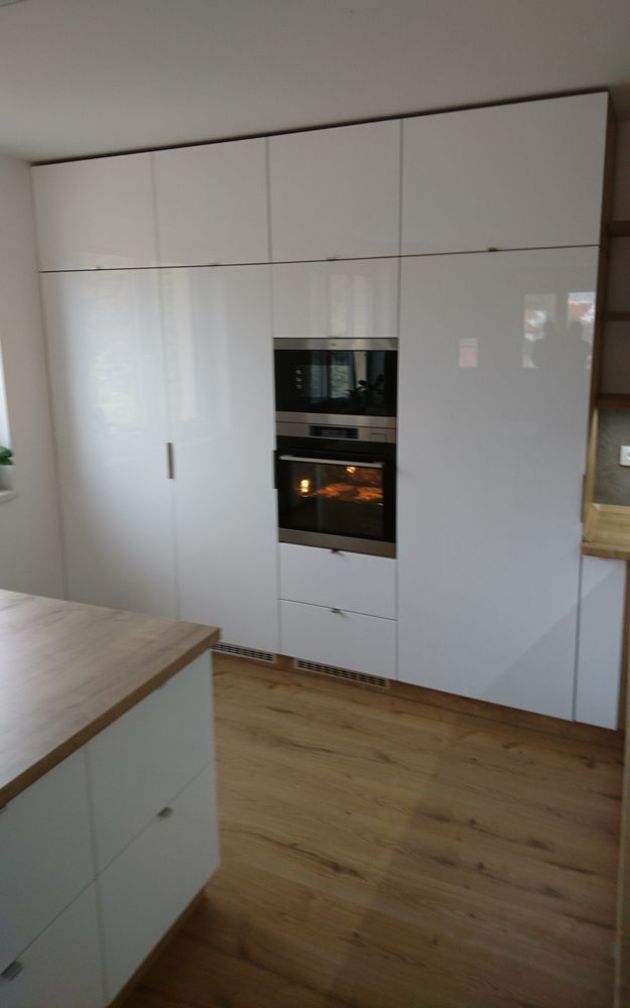 Moderní linka v oblíbené kombinaci bílého lesku a přírodního dubu. Praktický ostrůvek nabízí velkou pracovní plochu i úložné prostory. Otevřené police a stůl s nástavcem už jen podtrhují luxusní vzhled této linky!